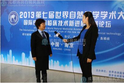 图:第七届世界自然医学学术大会会后,吴占琴医生(左)接受媒体采访